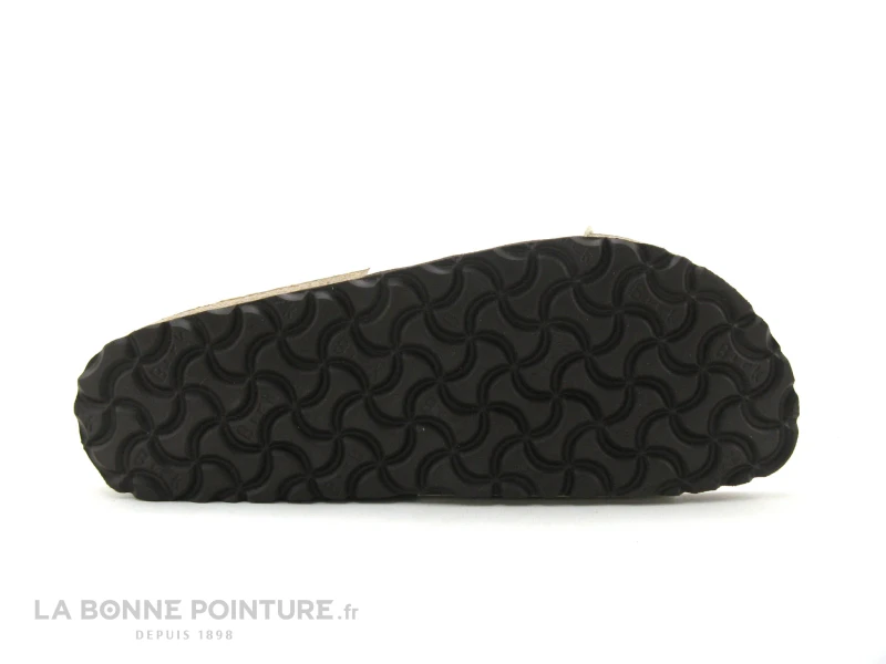 La doublure de la mule Femme Birkenstock Arizona taupe est en textile, et la semelle de propreté anatomique est en cuir velours.