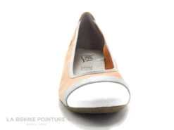 Cette ballerine Femme tout en cuir Inéa Celeste est en cuir doré nuancé de blanc, avec les extrémités bleu marine et une bande de cuir orange.
