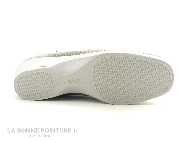Les pieds sensibles apprécieront cette belle chaussure classique Femme Semelflex Gigi, composée de toile gris clair.
